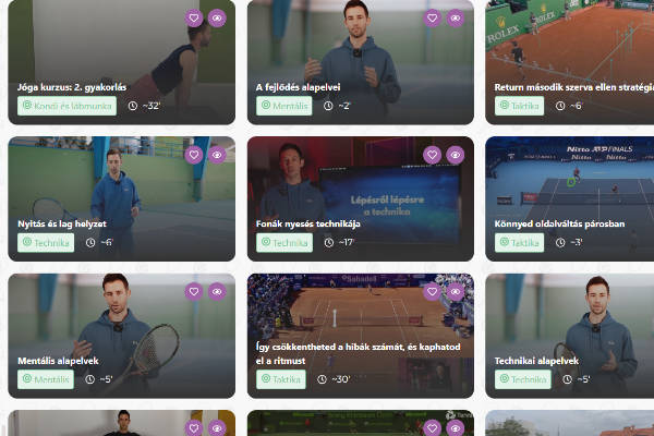 Azt gondolom, hogy az átlagban 2 perces napi videó, mindenkinek az idejébe belefér. Ezt mindenképpen javasolnám, mert a tipp megnézése után még elképzelhető, hogy gondolkozni fogsz rajta. Érdemes kiépíteni egy szokást, amiben napi szinten néhány percet foglalkozol a tenisszel és, amikor kicsivel több időd van akkor megnézni néhány részt a különböző kurzusokból.